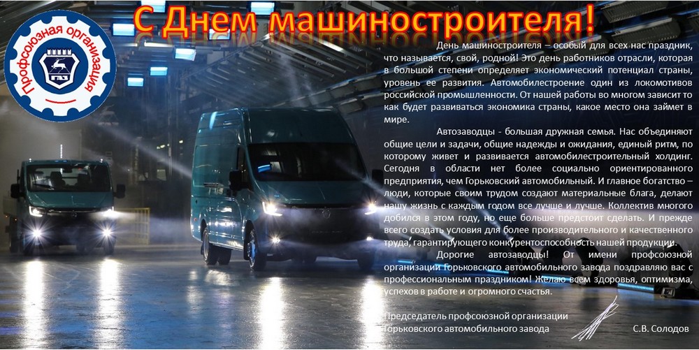 От имени профсоюзной организации Горьковского автомобильного завода поздравляю вас профессиональным праздником!