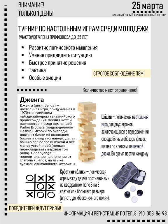 Профсоюзная организация ГАЗа приглашает молодежь 25.03.2021г. поучаствовать в тактических настольных играх.