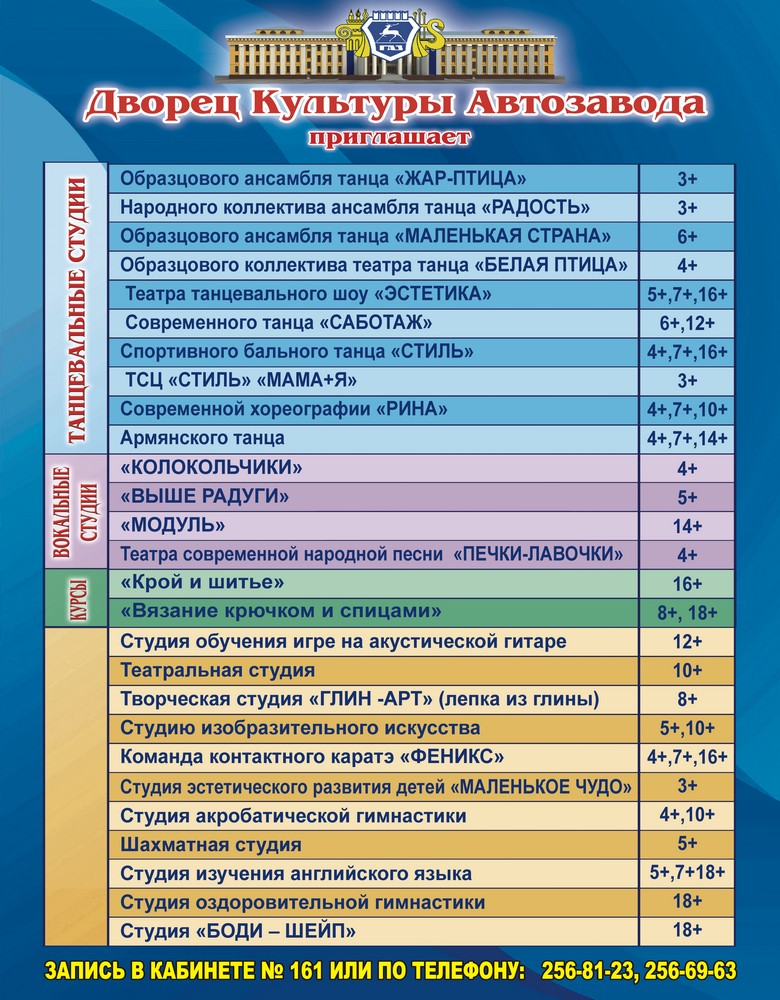 Запись в кружки, студии и творческие коллективы ДК ГАЗ осуществляется: