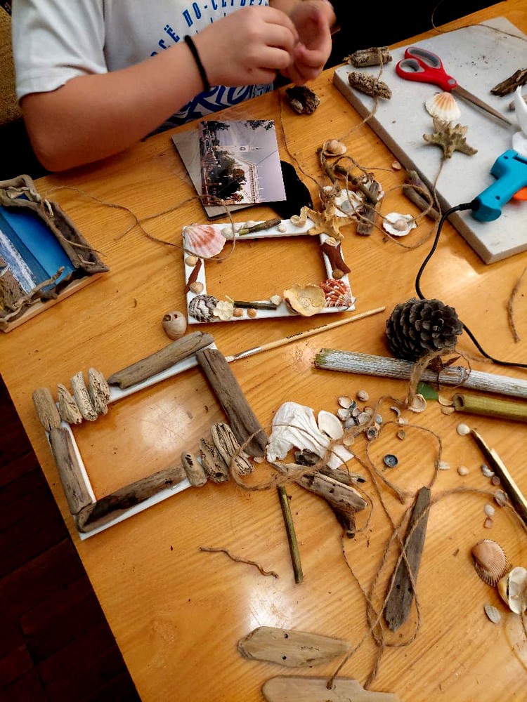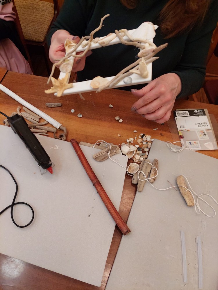 В качестве материалов использовали палки, ракушки и элементы растений, выловленных из воды и собранных когда-то по берегам моря.