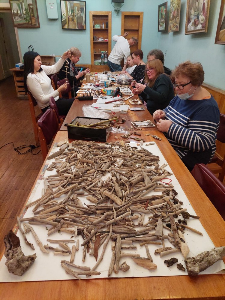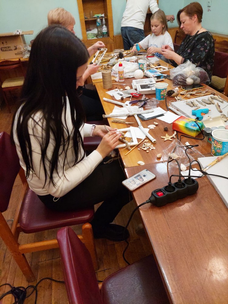 Организаторы поняли, что на поделку уйдет мало времени и члены клуба не успеют насладиться общением. Спонтанно расширили тематику вечера. Добавились еще и "Мобили" (подвесные украшения). Гора материалов разрешает сделать это.