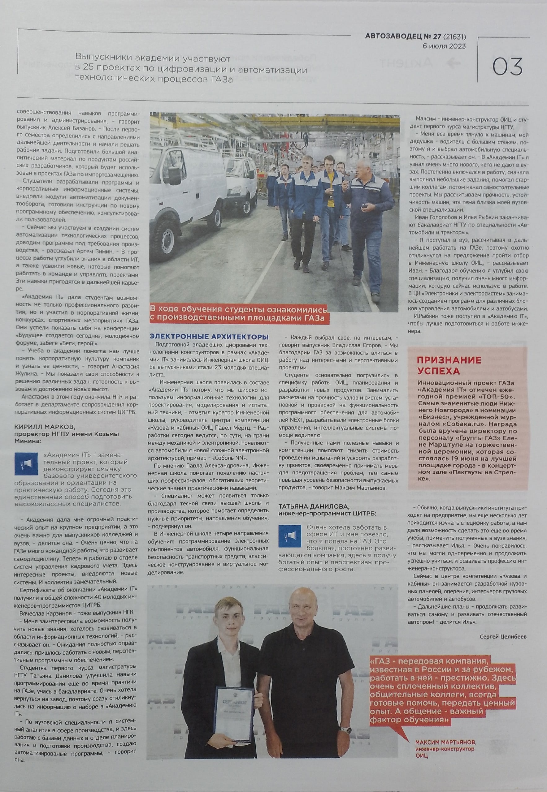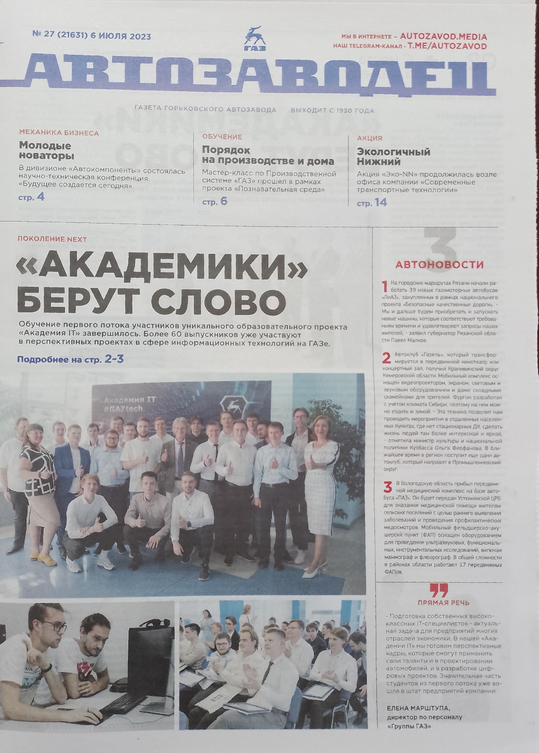 Читаем корпоративную газету "Автозаводец" №27 от 06.07.2023