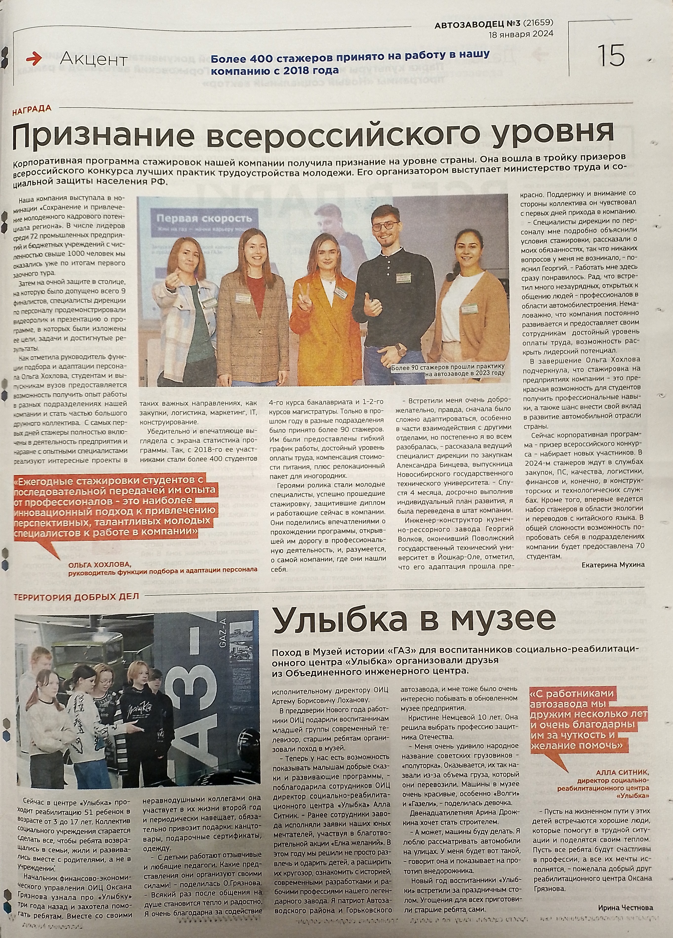 Читаем корпоративную газету "Автозаводец" №3 от 18.01.2024
