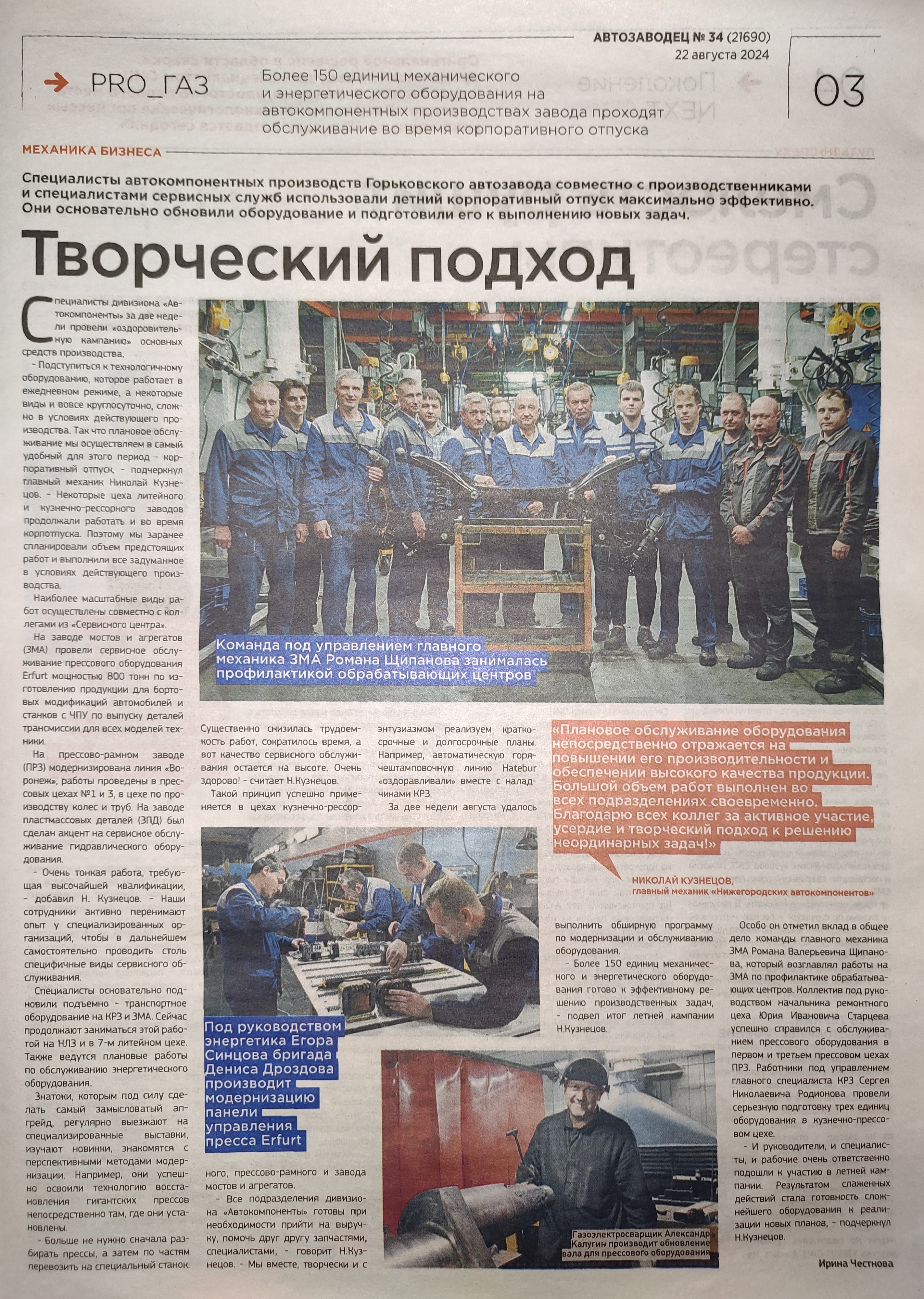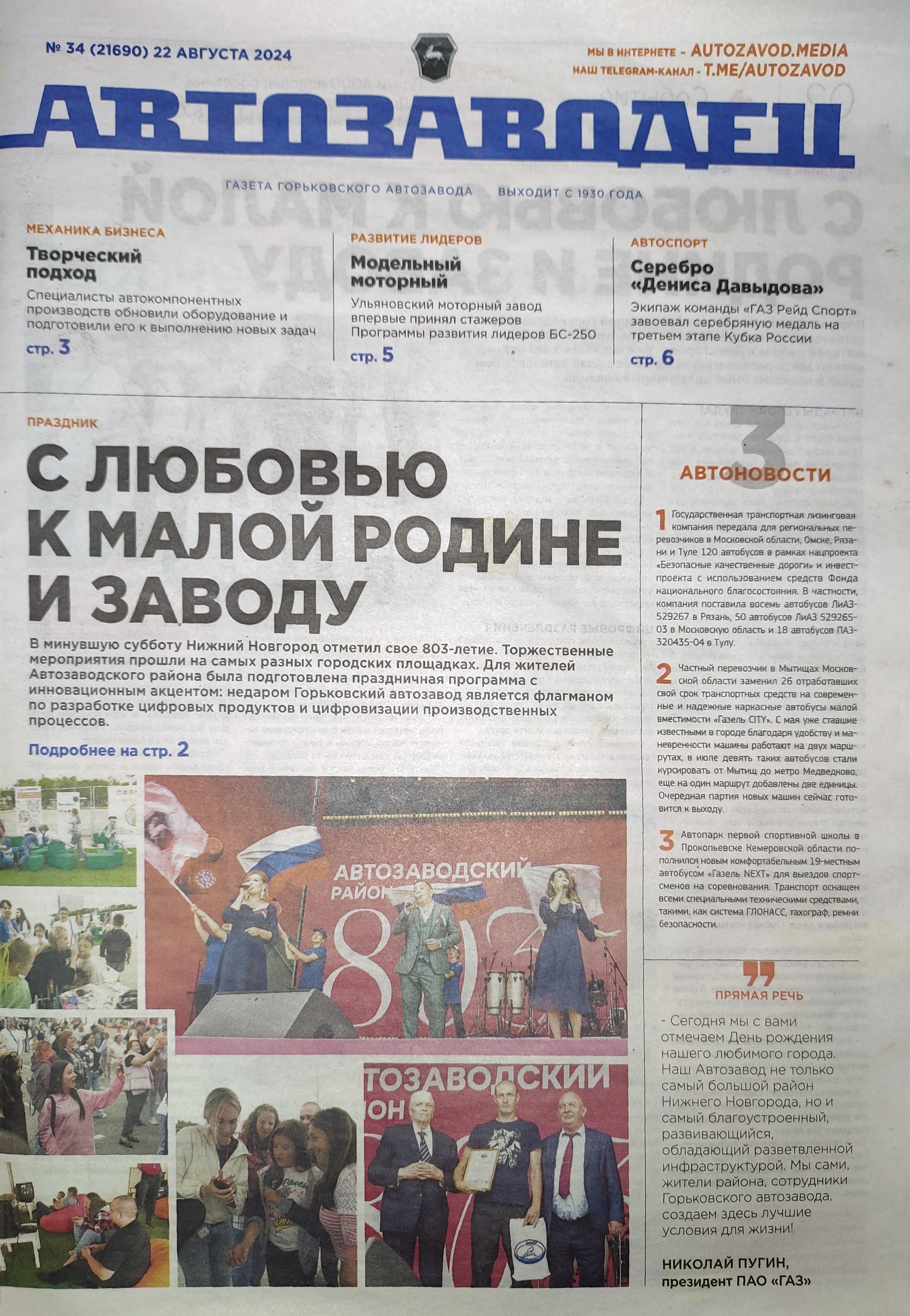 Читаем корпоративную газету "Автозаводец" №34 от 22.08.2024