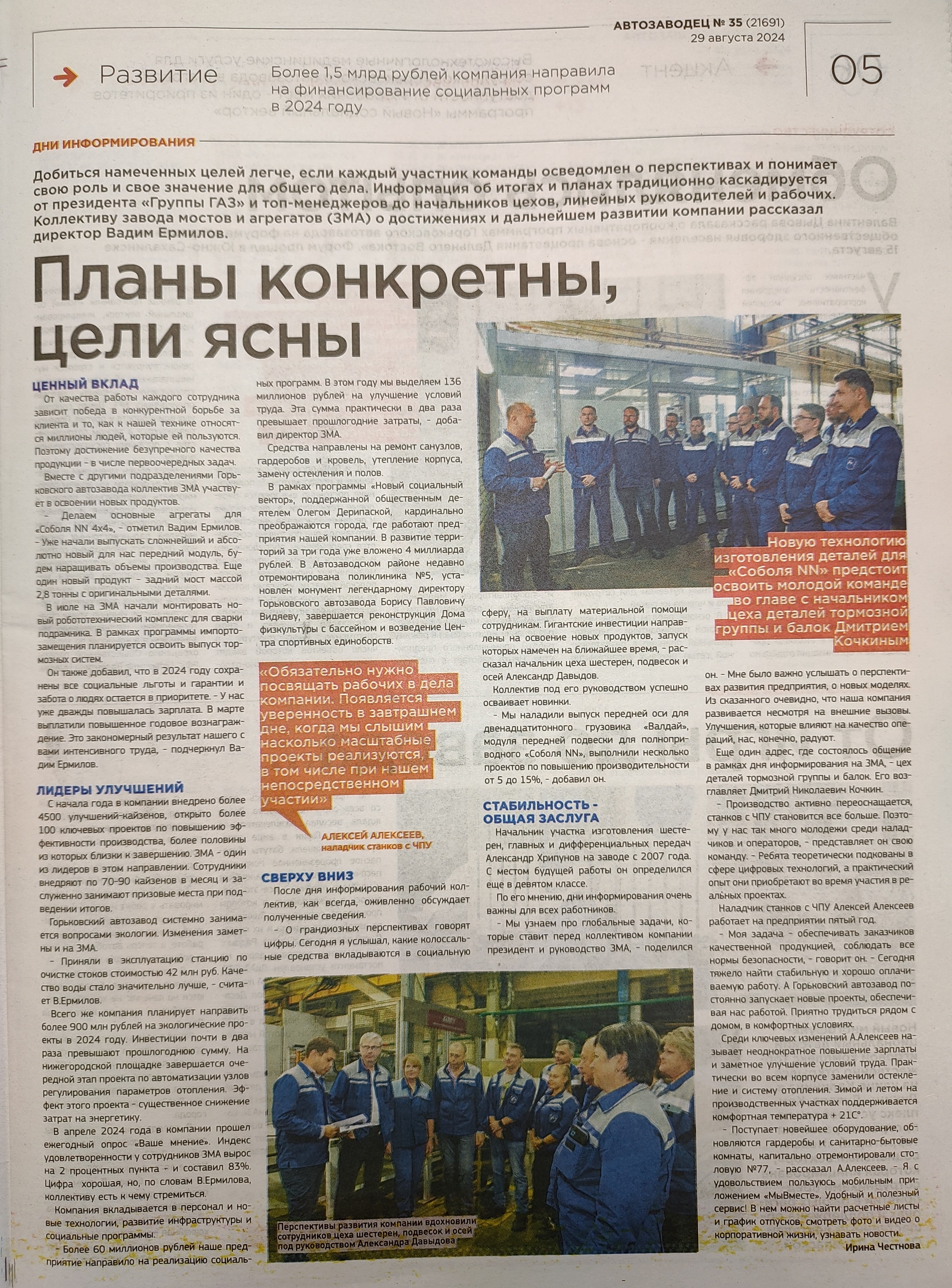 Читаем корпоративную газету "Автозаводец" №35 от 29.08.2024