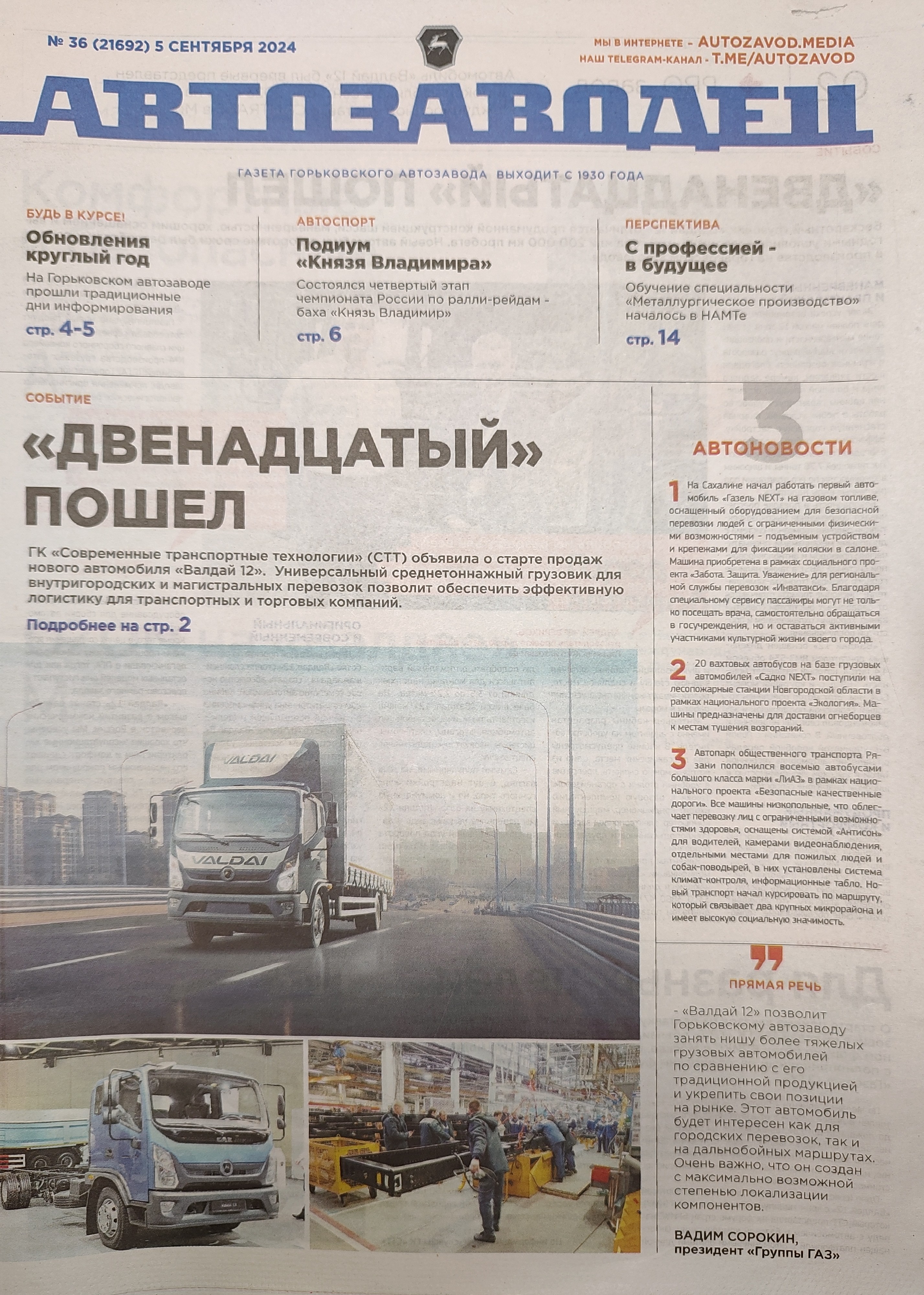 Читаем корпоративную газету "Автозаводец" №36 от 05.09.2024