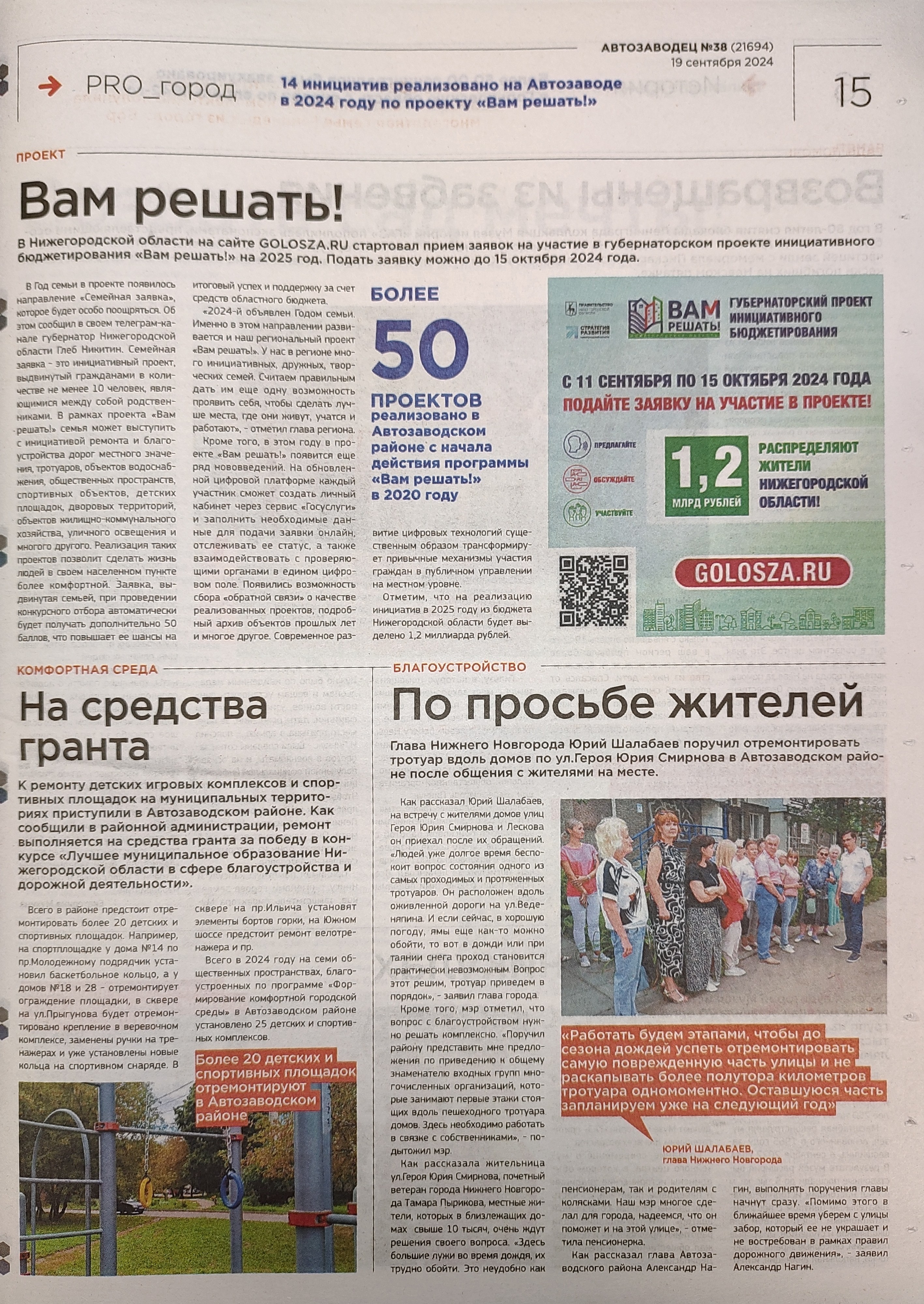 Читаем корпоративную газету "Автозаводец" №38 от 19.09.2024