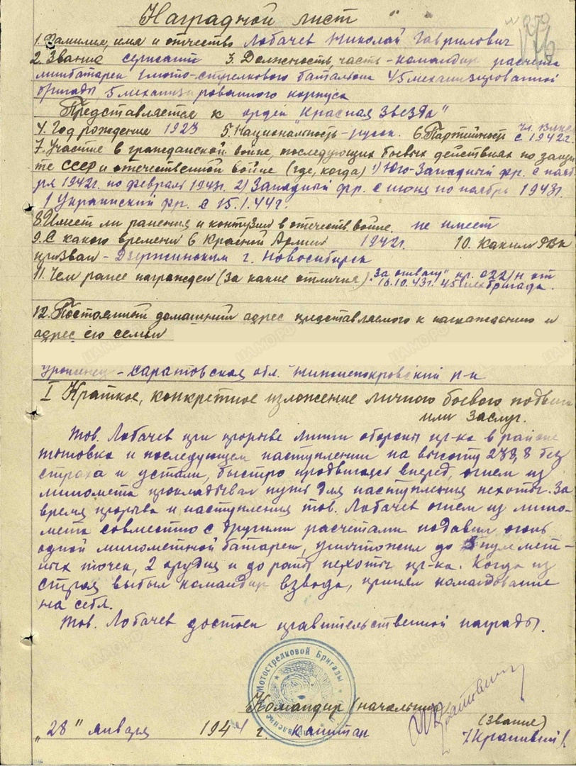 В 1945 году Н. Г. Лобачев окончил Харьковское танковое училище.