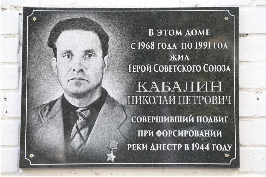 Мемориальную доску Герою Советского Союза Николаю Петровичу Кабалину торжественно открыли 24 июня 2021 года на фасаде дома №3 по улице Веденяпина, где он жил.