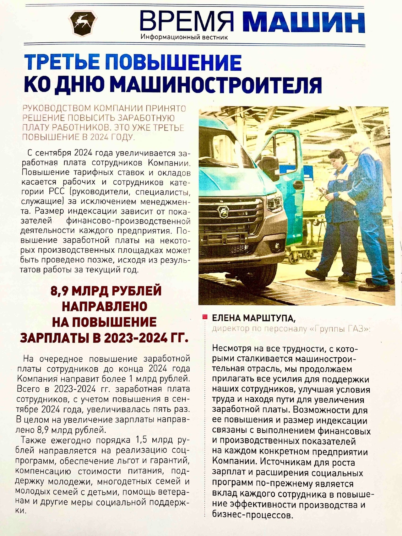 Руководством компании принято решение повысить заработную плату работников. Это уже третье повышение в 2024 году.