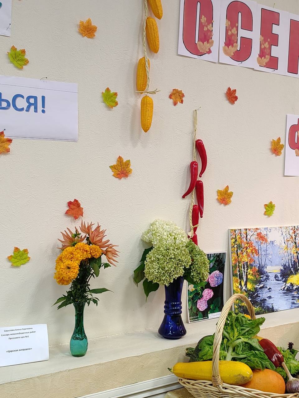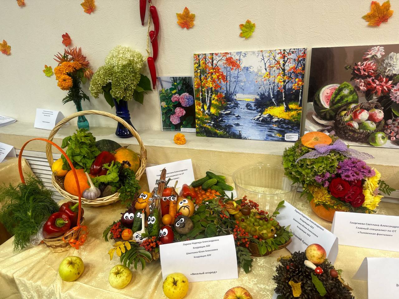 Чего здесь только нет! И картины, и композиции из овощей, и картины с осенними мотивами, и шикарные букеты, и поделки, причудливая морковь, гигантские огурец и баклажан!