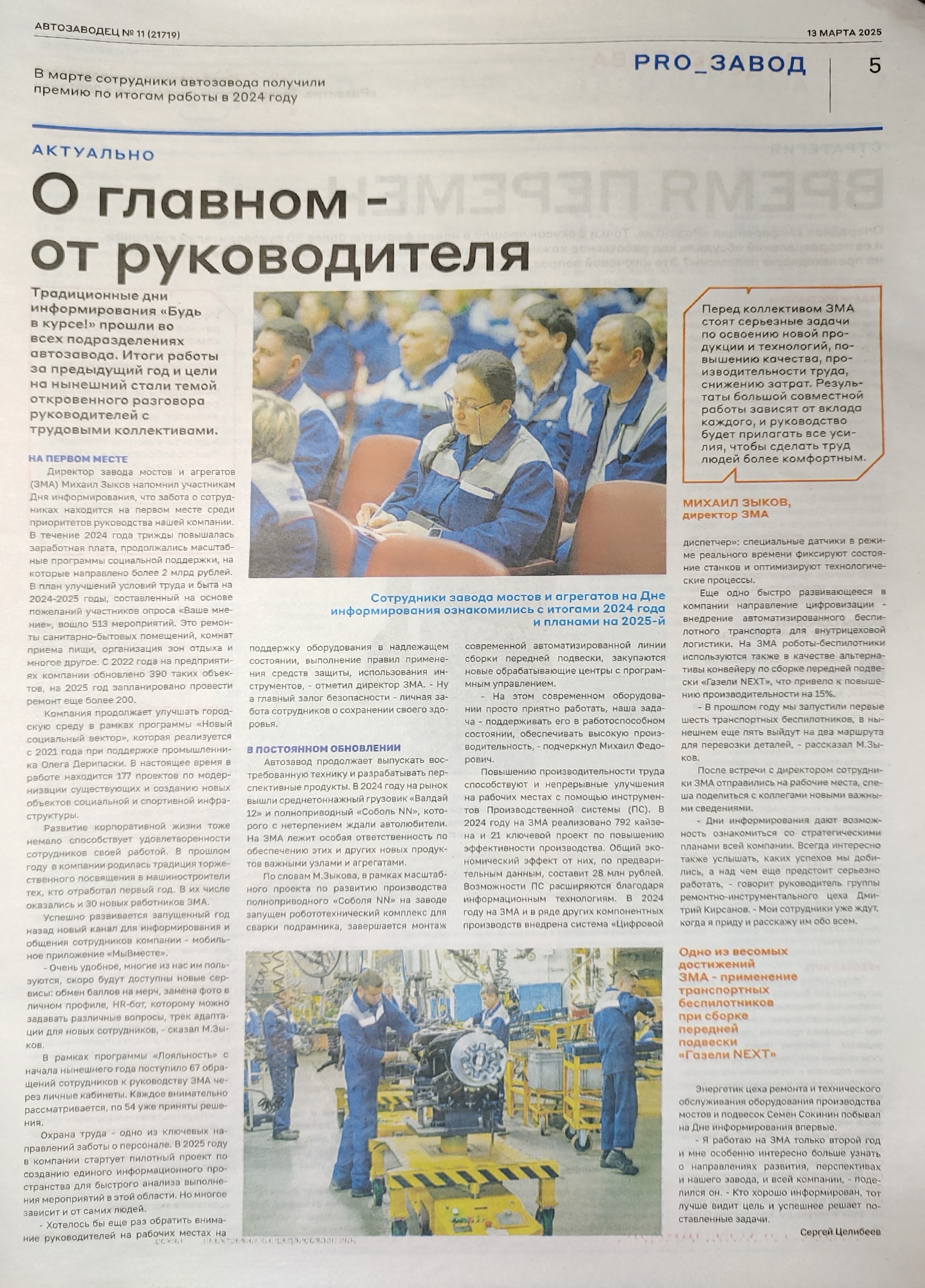 Читаем корпоративную газету "Автозаводец" №11 от 06.03.2025