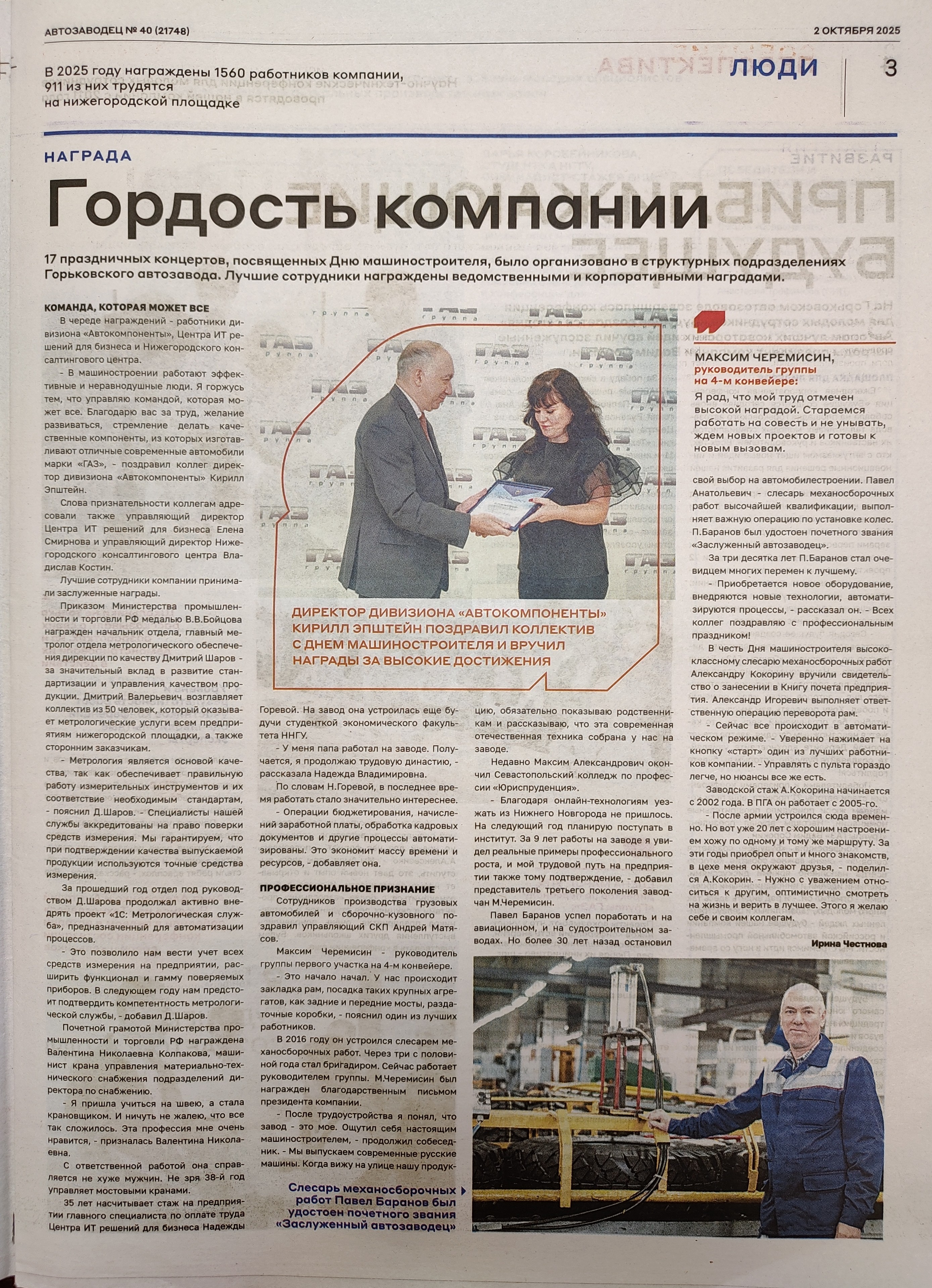 Читаем корпоративную газету "Автозаводец", №40 от 02.10.2025