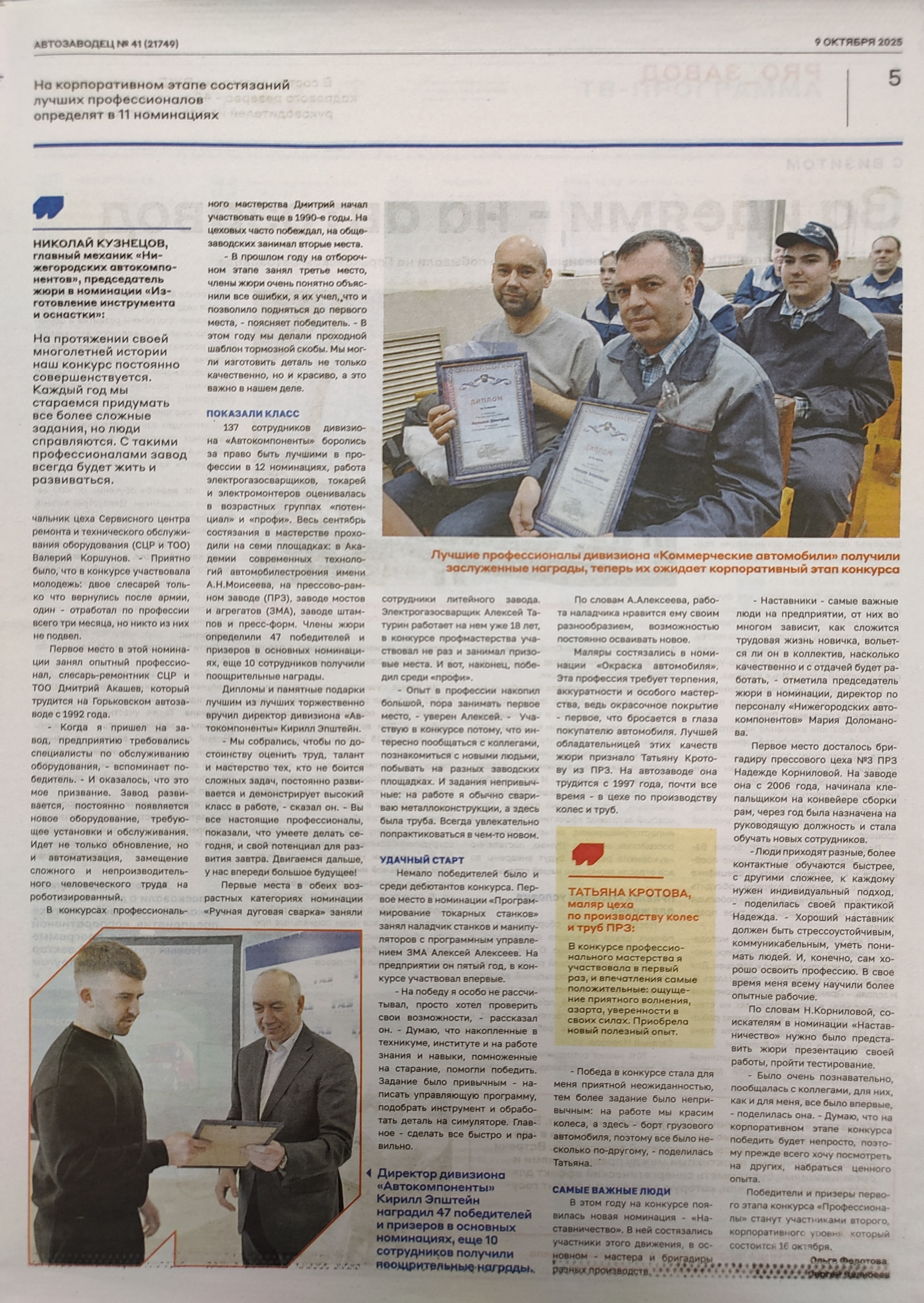 Читаем корпоративную газету "Автозаводец", №41 от 09.10.2025