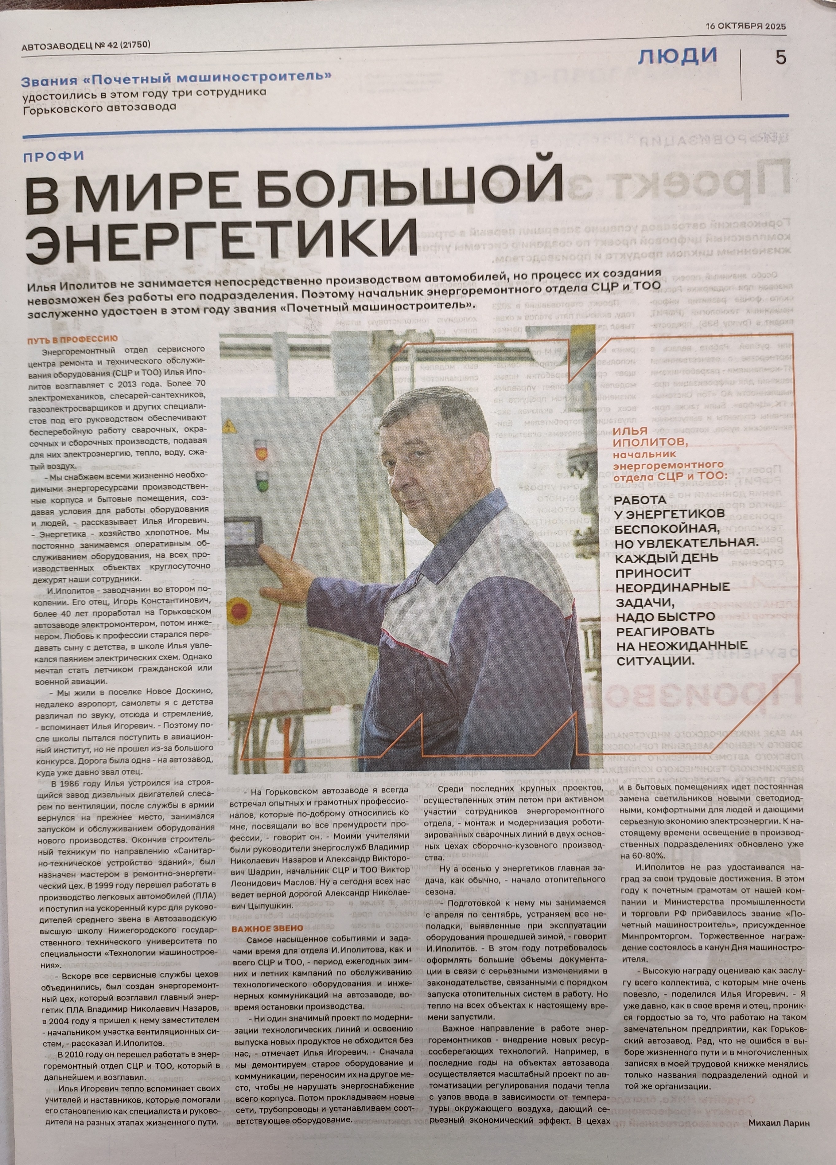 Читаем корпоративную газету "Автозаводец", №42 от 16.10.2025