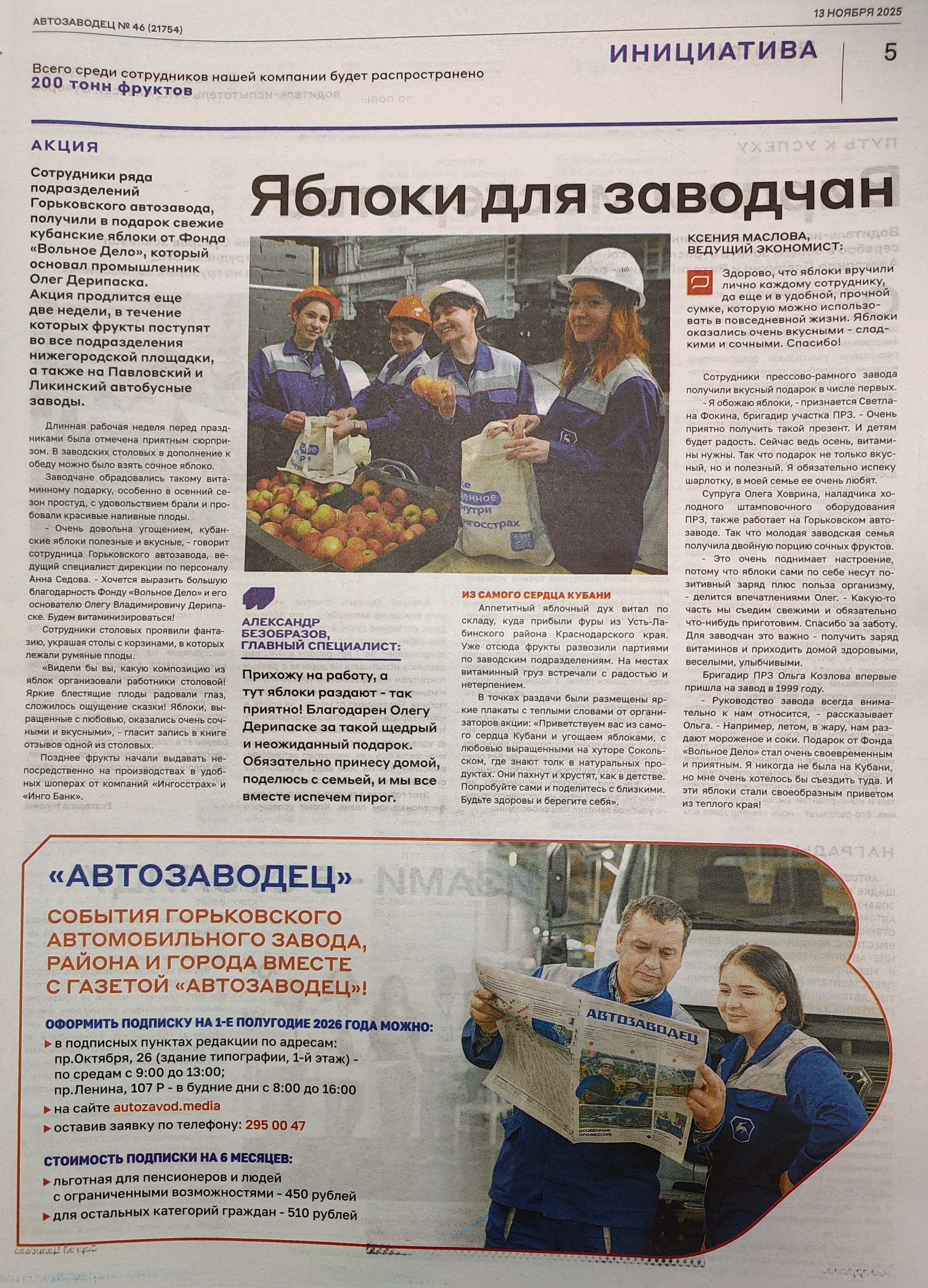 Читаем корпоративную газету "Автозаводец", №46 от 13.11.2025