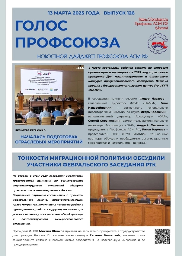Вышел очередной номер №126 газеты Профсоюза АСМ РФ "ГОЛОС ПРОФСОЮЗА"