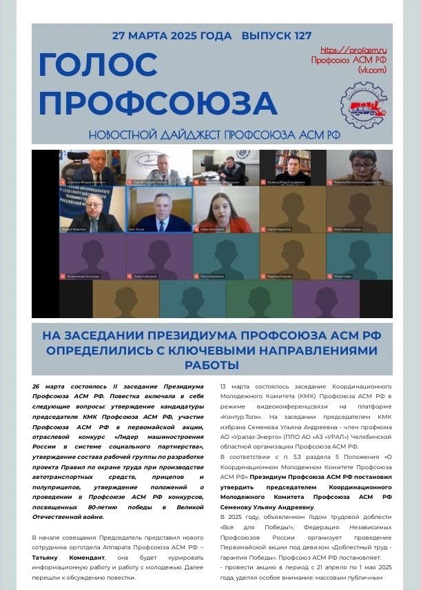 Вышел очередной номер №127 газеты Профсоюза АСМ РФ "ГОЛОС ПРОФСОЮЗА"