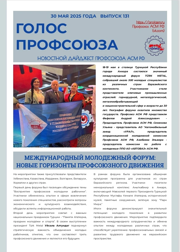 Вышел очередной номер №131 газеты Профсоюза АСМ РФ "ГОЛОС ПРОФСОЮЗА"