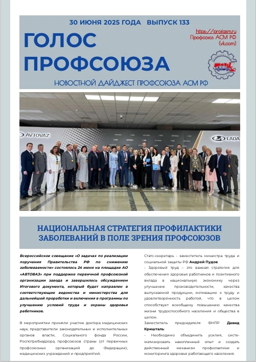 Вышел очередной номер №133 газеты Профсоюза АСМ РФ "ГОЛОС ПРОФСОЮЗА"