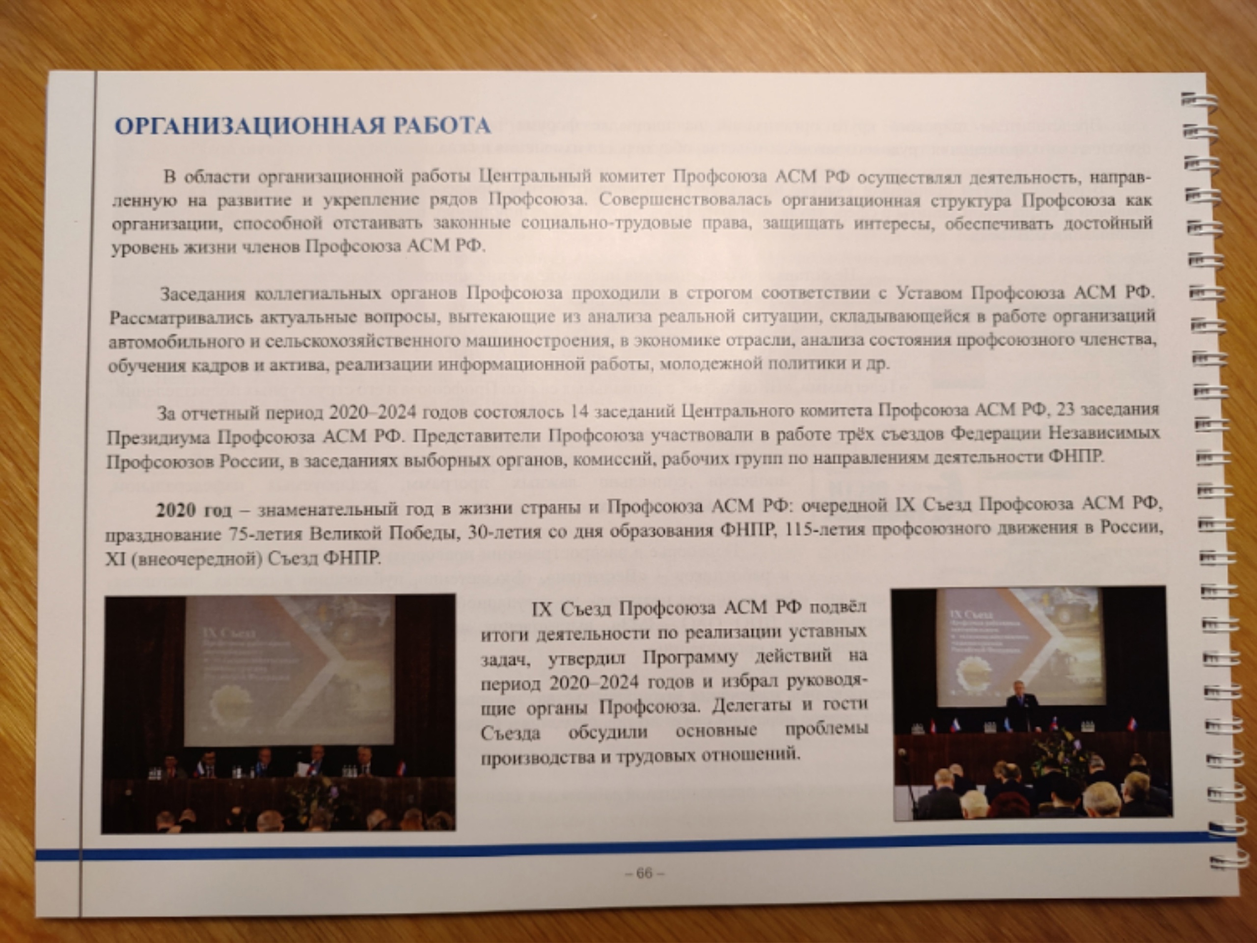 Кроме того, для делегатов Съезда был подготовлен обширный информационный материал о работе Центрального комитета Профсоюза АСМ РФ с 2020 по 2024 годы.