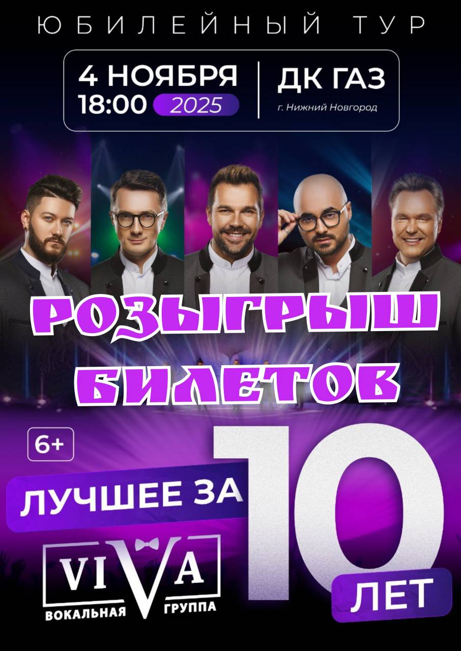 Наш партнёр вокальная группа VIVA 4 ноября 2025 года во Дворце культуры Горьковского автозавода даёт концерт, посвященный своему 10-летию.