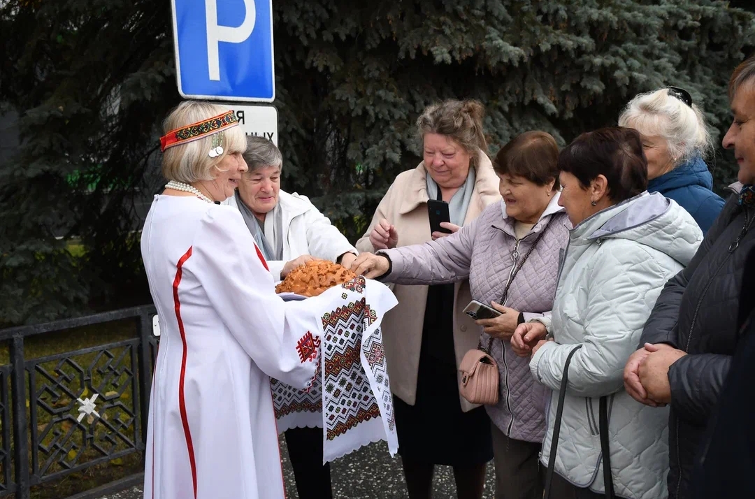 Красивая осенняя дорога, задушевные разговоры и воспоминания. И вот уже наших ветеранов встречают с хлебом и солью на Чувашской земле ветераны Вурнарского завода в национальных костюмах и его директор Свешников Владимир Васильевич.