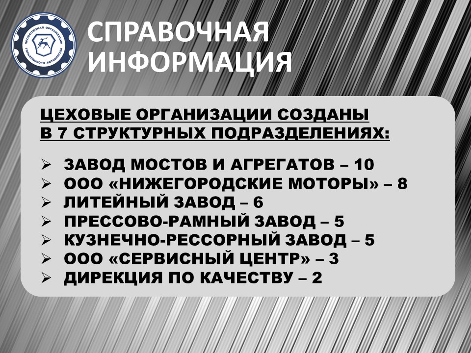 Информация подготовлена председателем комиссии по организационной работе ППО в ОАО «ГАЗ» Волынской Татьяной Ивановной.