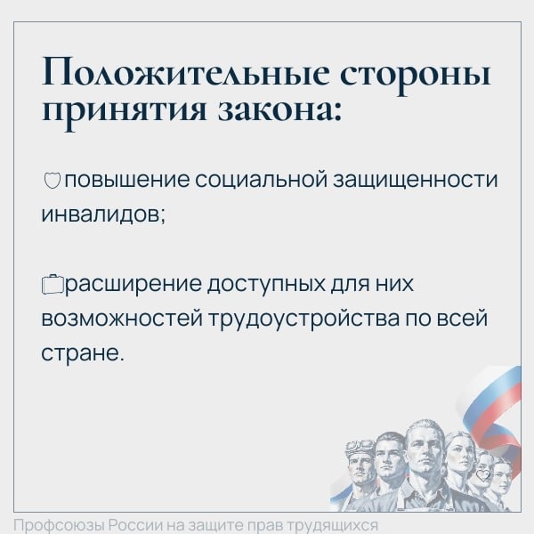 Инициатива расширяет возможности для трудоустройства инвалидов и обеспечивает единые правила для всех работодателей.