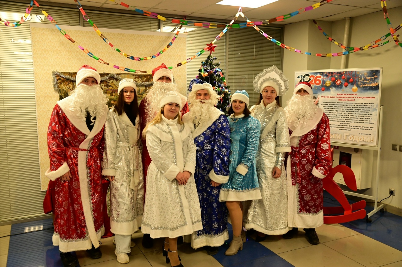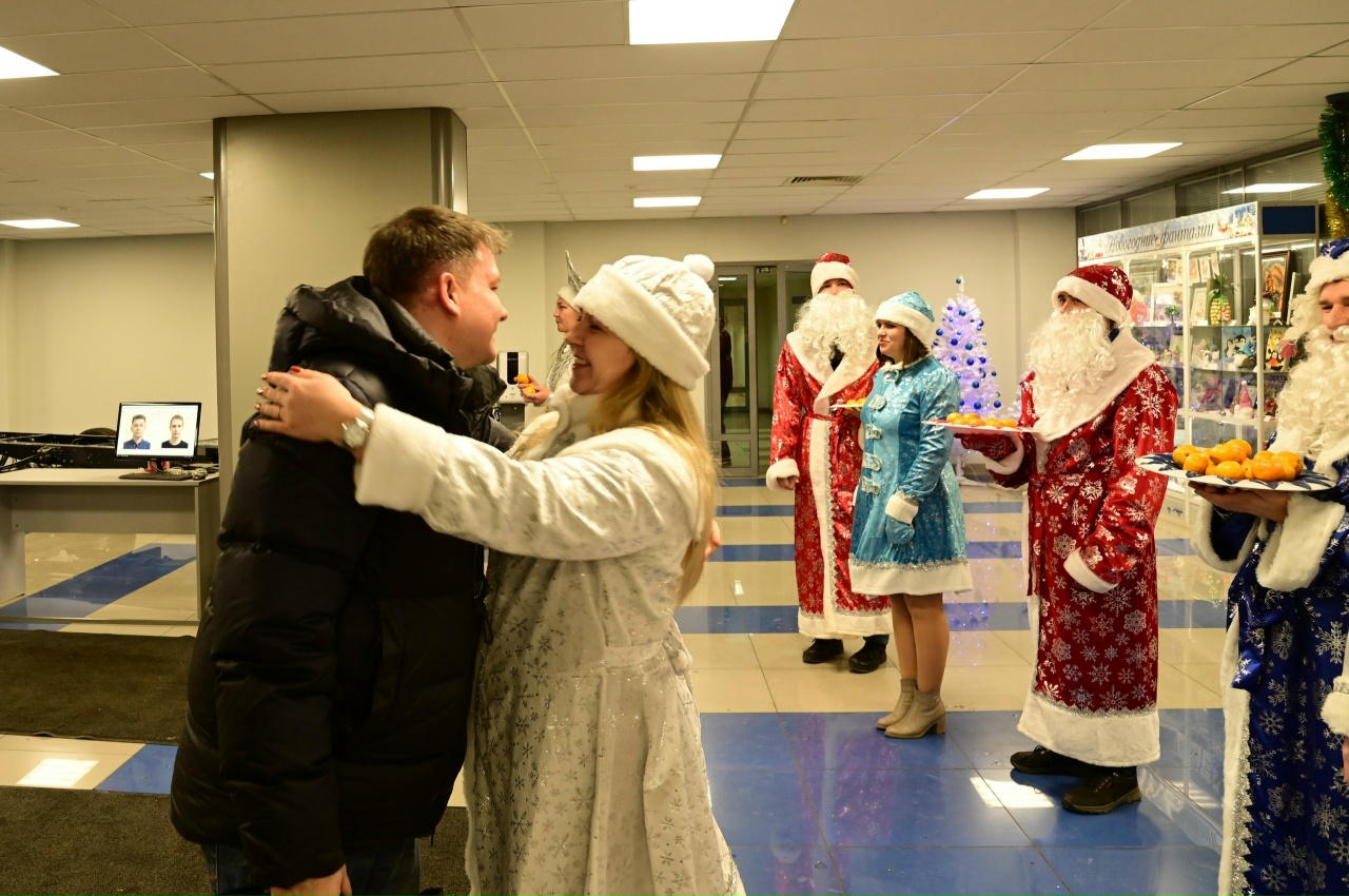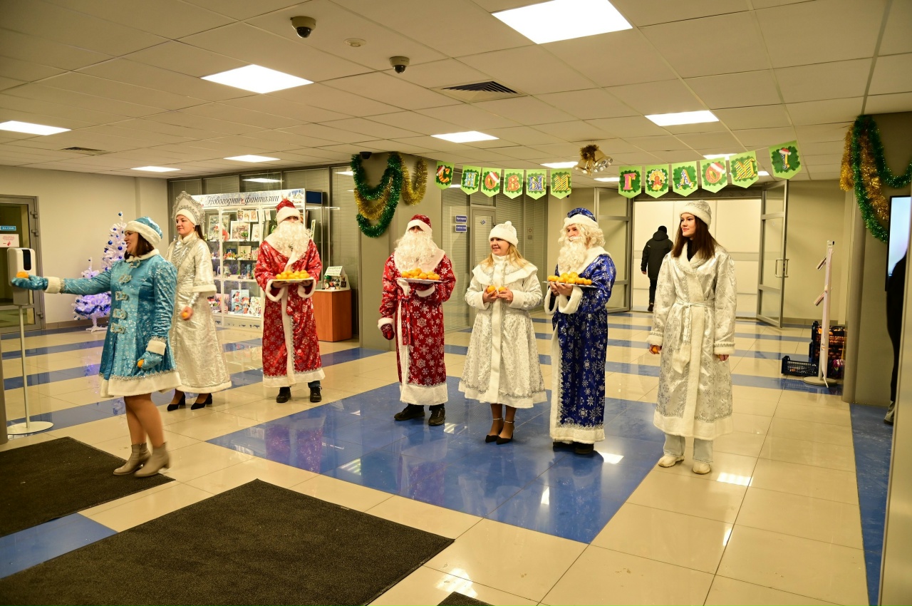 Утро началось празднично и весело: сотрудников Объединенного инженерного центра приветствовала молодежь, наряженная в костюмы Деда Мороза и Снегурочки, дарившая традиционно каждому мандарины.