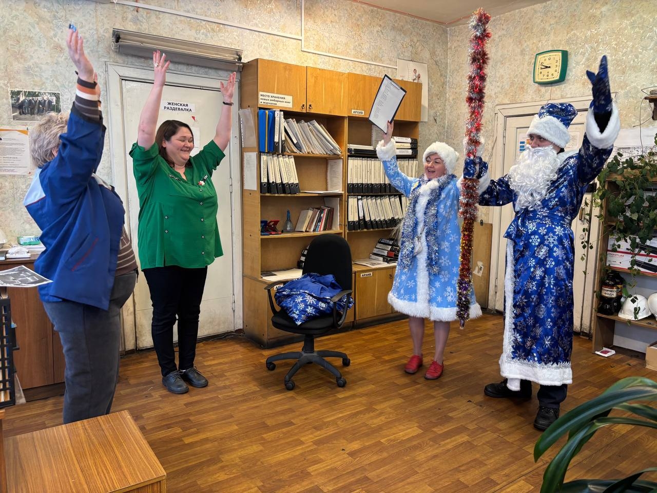 Сказочные гости устроили настоящую Новогоднюю феерию прямо посреди рабочих будней. Весёлые поздравления, добрые пожелания счастья, крепкого здоровья и исполнения самых сокровенных мечтаний звучали повсюду.