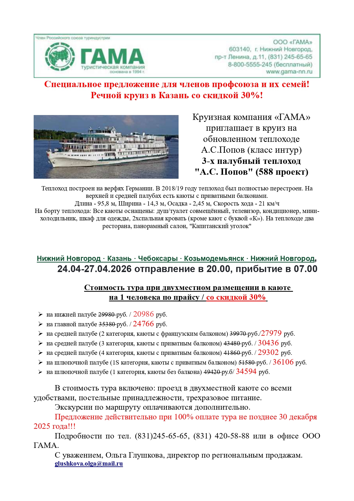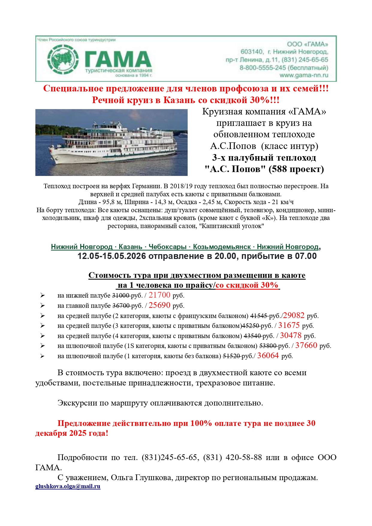 Данное предложение действительно при 100% оплате тура до 30 декабря 2025 года.