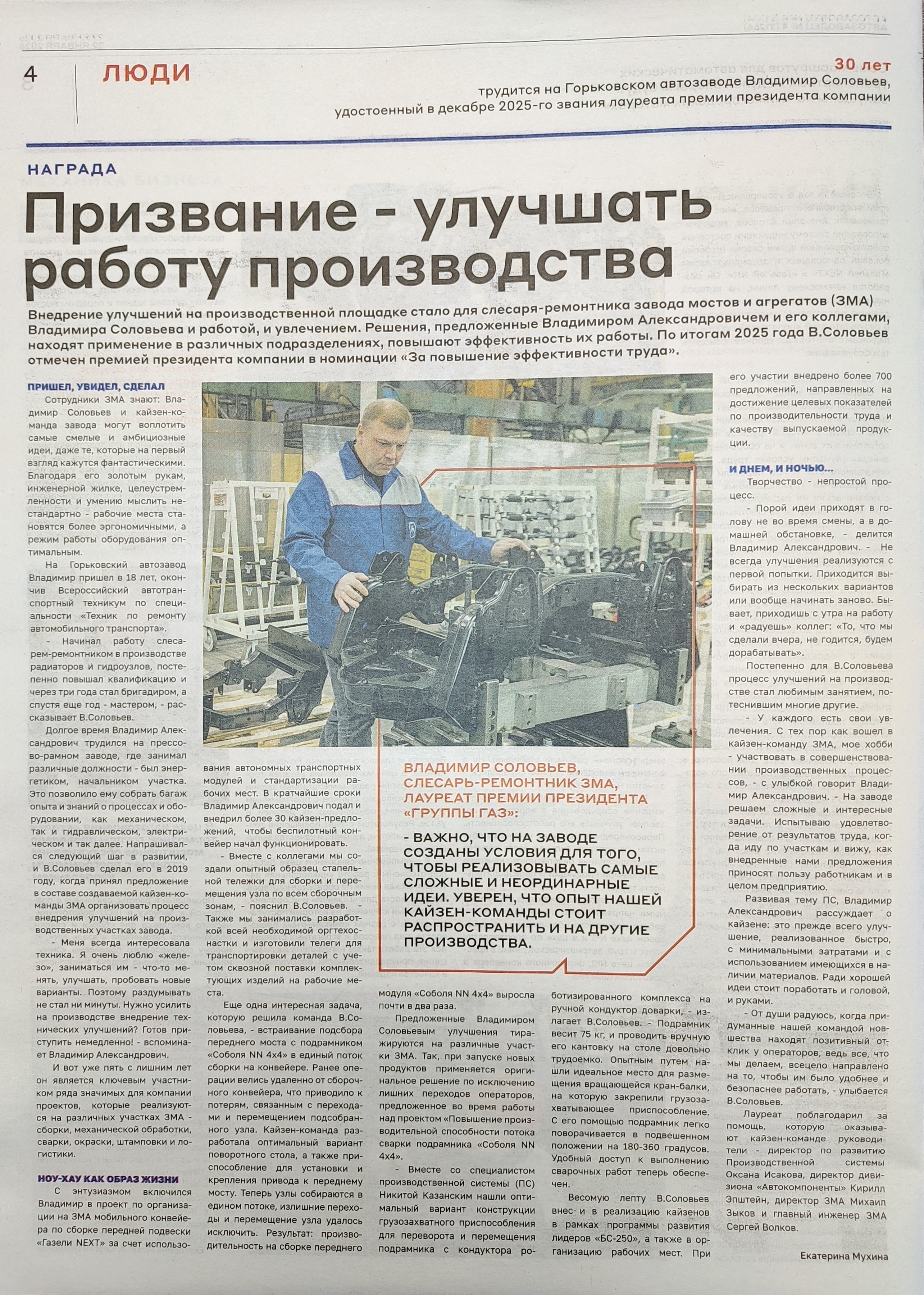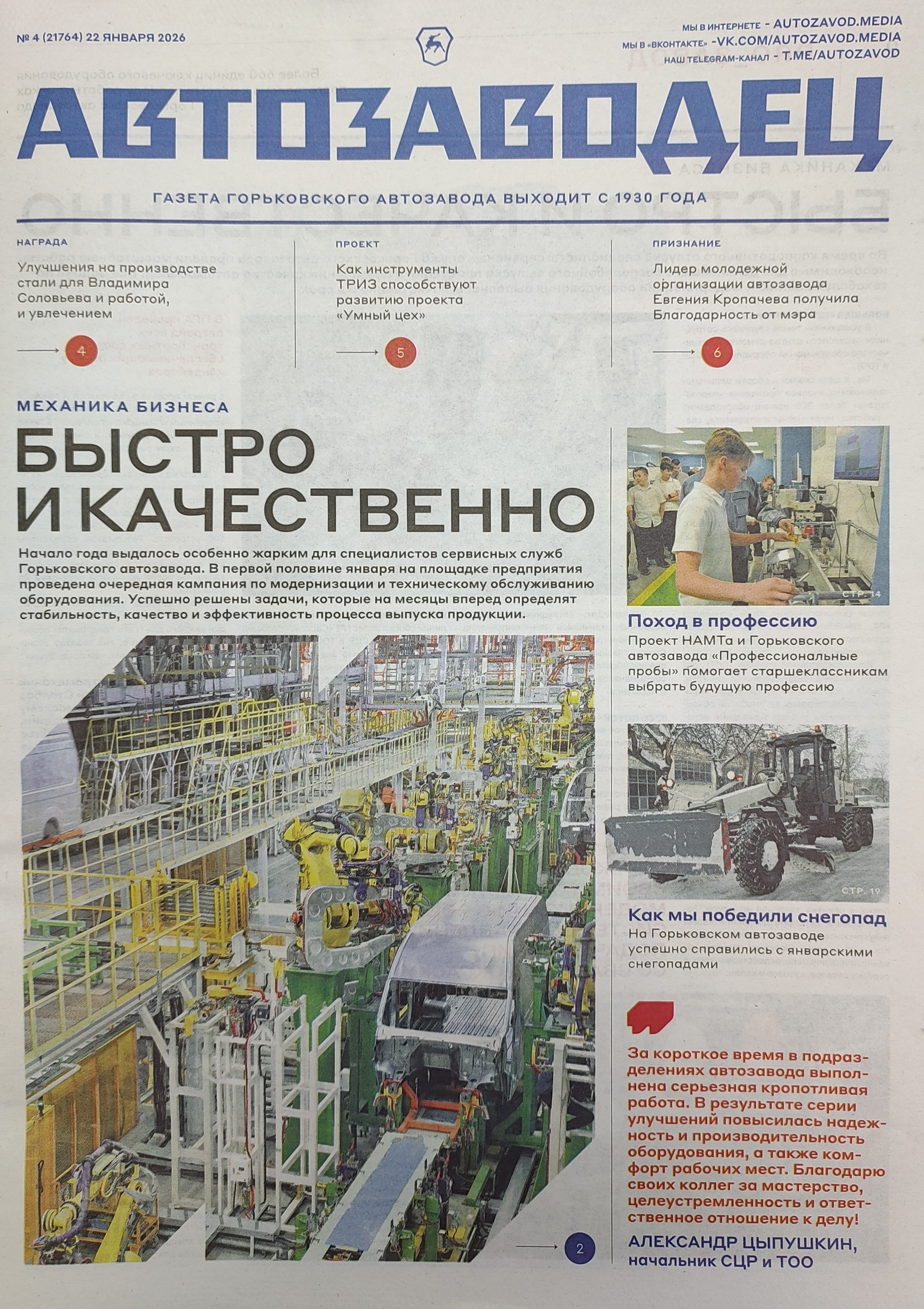 Читаем корпоративную газету "Автозаводец" №4 от 22.01.2026