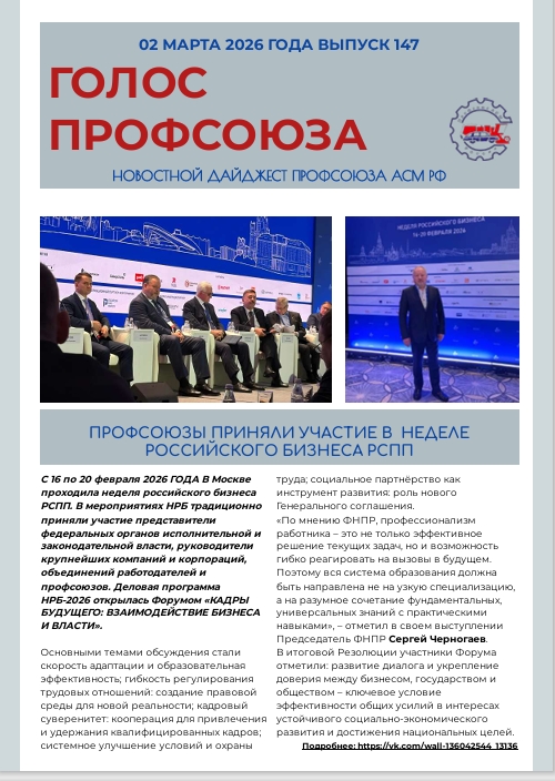 Вышел очередной номер №147 газеты Профсоюза АСМ РФ "ГОЛОС ПРОФСОЮЗА"