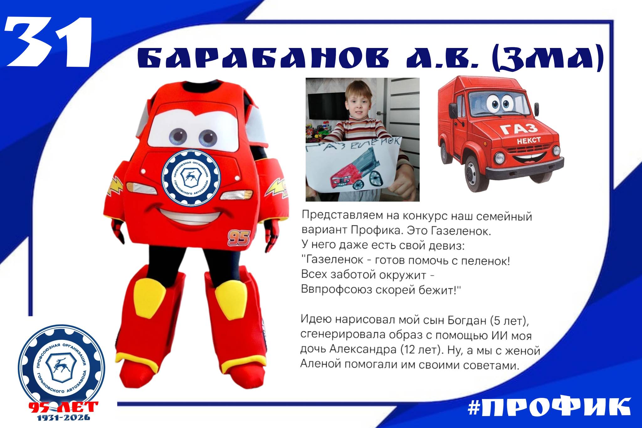 На конкурс поступило 60 работ, в которых 32 работника из 14 подразделений завода (ДЗР, ДПК, ЗМА, ЗЦЛ, КРЗ, НГА, НКА, ОИЦ, ПГА, ППО, ПСТ, ПРЗ, ПУАТ, УЖТ ) представили свое видение профсоюзного символа, который смог бы послужить прообразом ростовой куклы-талисмана нашей профсоюзной организации.