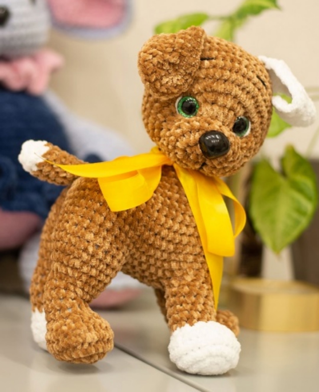 Игрушки Светлана Евгеньевна вяжет крючком из плюшевой пряжи.