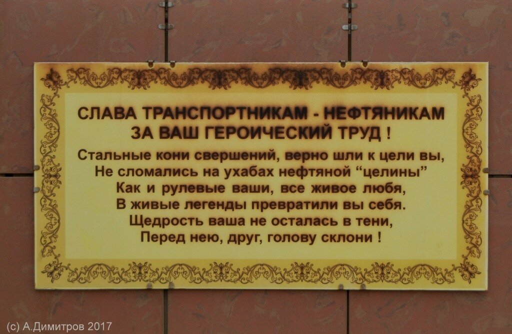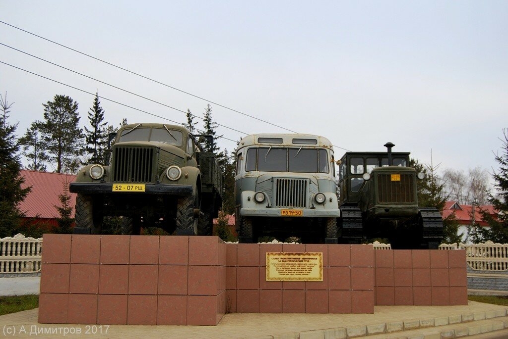 Комплекс, состоящий из трёх транспортных средств ГАЗ-63, автобуса КАвЗ и трактора ЧТЗ, находится возле проходной ООО «Елховтранссервис» и посвящён транспортникам-нефтяникам, о чем и гласит памятная табличка.