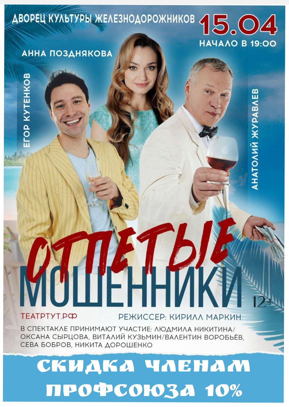 Спектакль«Отпетые мошенники» На всякого мудреца довольно простоты, а на всякого опытного мошенника всегда найдётся другой хитрец, который не просто проведет тебя вокруг пальца, но еще и заставит искренне уверовать в необходимость этого обмана. Ну а если в эти запутанные хитросплетения вмешивается женщина, то вовсе жди беды. «Отпетые мошенники». Блестящий актерский ансамбль, звезд российского театра и кино Анатолия Журавлева и Егора Кутенкова, а также обворожительных Виктории Заболотной и Анны Поздняковой, интригует зрителя закрученным сюжетом, заставляя смеяться и сопереживать героям на