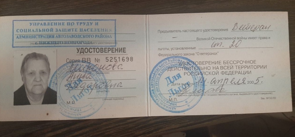 Миронова Анна Федоровна (1924-2018) во время войны рыла окопы у города Горького. На Горьковском автозаводе работала маляром в гальваническом цехе ПГА.
