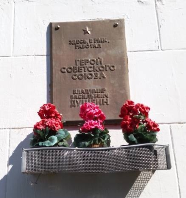 Мемориальная доска Герою Советского Союза Душеину В.В. установлена на здании Управления главного механика Горьковского автомобильного завода, а также на доме, где жил Герой Советского Союза, в р.п.им.Калинина, ул.Чкалова, д.5.