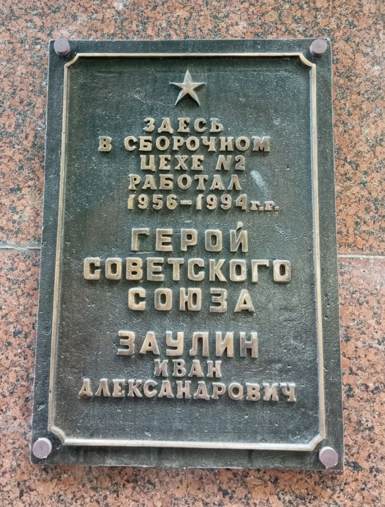 Ещё одна мемориальная доска Герою Великой Отечественной войны Заулину Ивану Александровичу установлена на фасаде сборочного цеха 2, где он работал с 1956 по 1994гг.