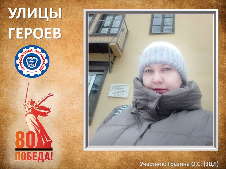 Горьковчанин. Автозаводец. Артиллерист. Лейтенант. Отличился в боях за освобождение Украины. Отбил 7 вражеских атак. Из единственного оставшегося орудия раненый вел огонь в одиночку.