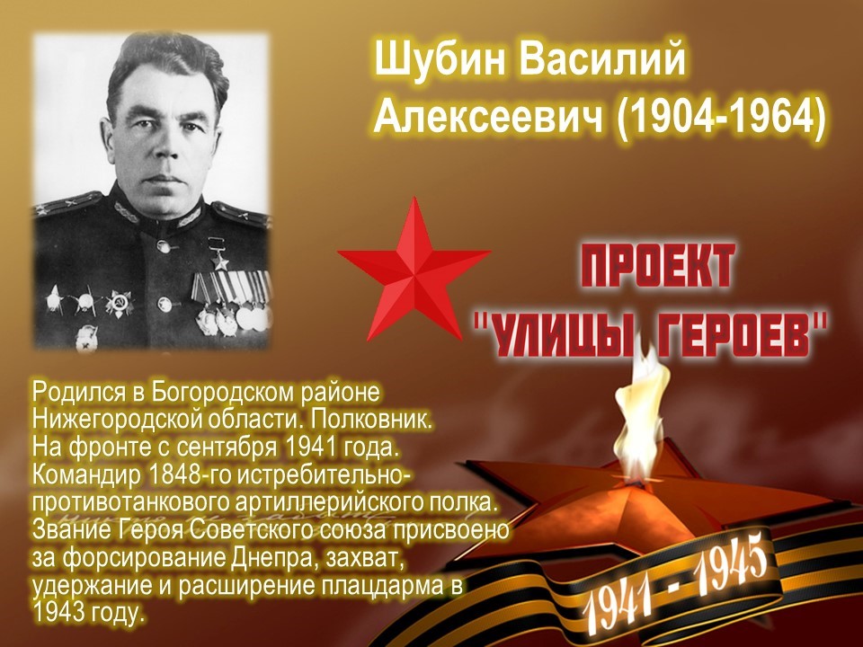 Командир 1848-го истребительно-противотанкового артиллерийского полка. Звание Героя Советского союза присвоено за форсирование Днепра, захват, удержание и расширение плацдарма в 1943 году.