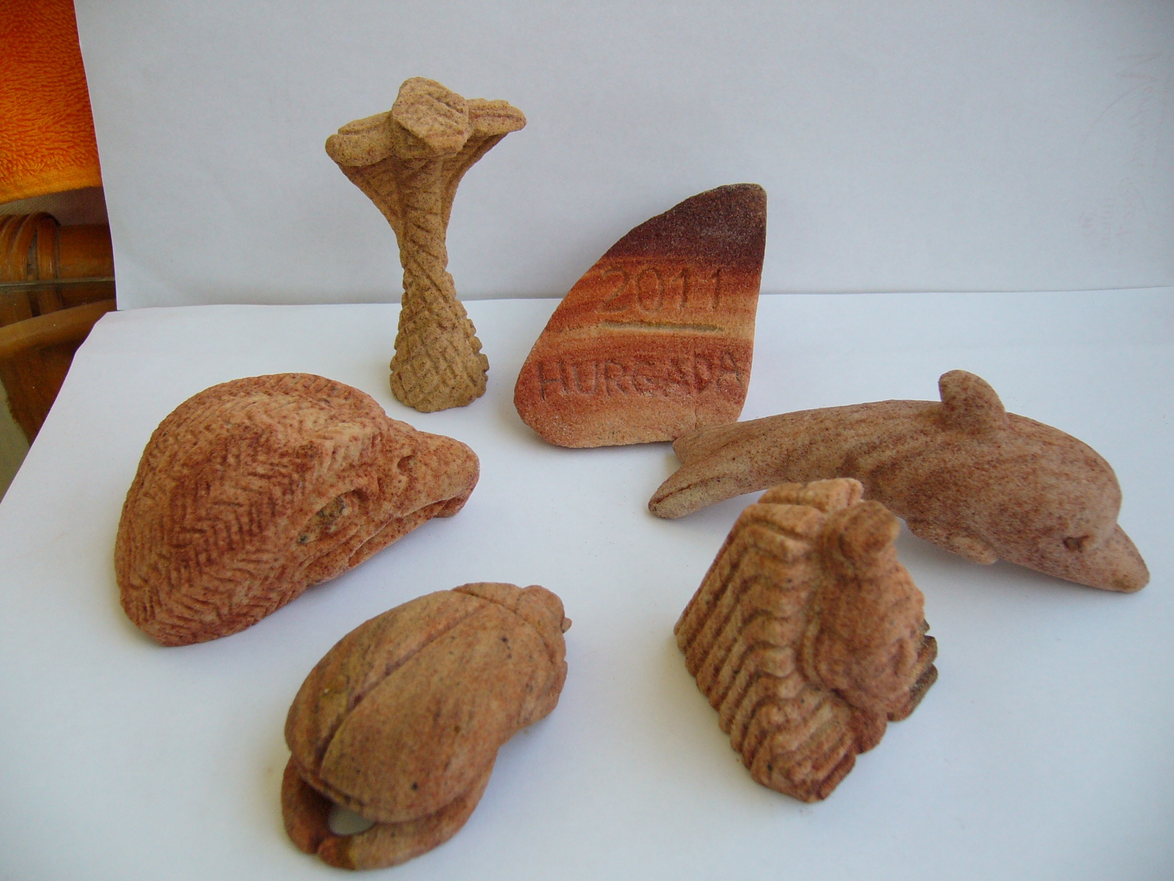 Во время загорания и ничегонеделания на пляже скучно просто так лежать. Прогуливаясь по окрестностям (Египет, г. Хургада, январь 2011 г.), увидев много красивой расцветки камней, вспомнил старинное детское занятие – вырезание всяческих фигурок из нашего речного камня – так называемой «опоки».