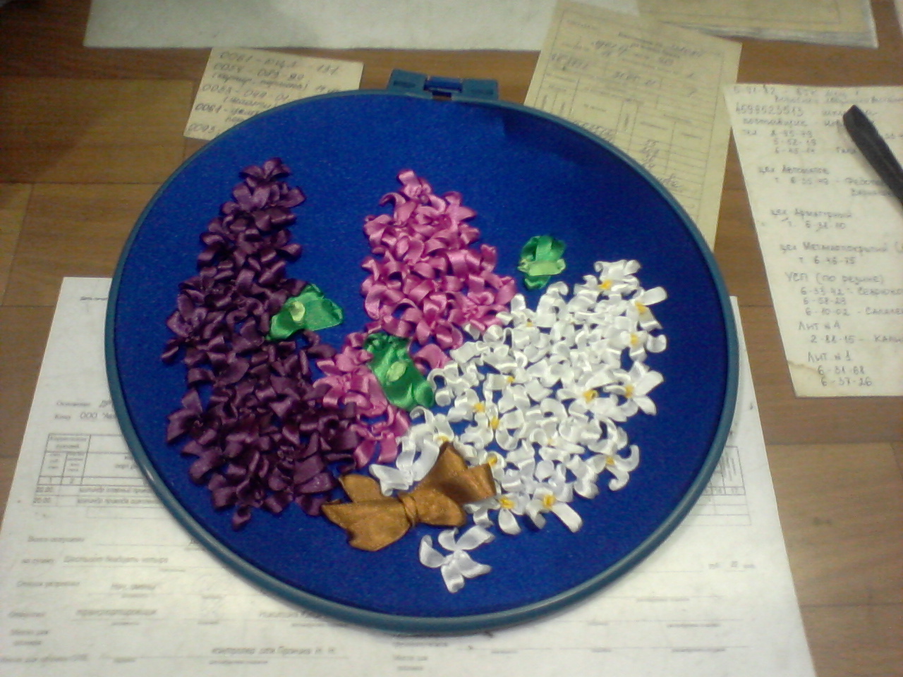 Мое увлечение - вышивка лентами. Год назад мне подарили картину. Я заинтересовалась, как же можно сделать такую красоту. Попробовала, получилось, увлеклась.Рисунки придумываю сама, для души. Дарю друзьям, чтобы их порадовать.