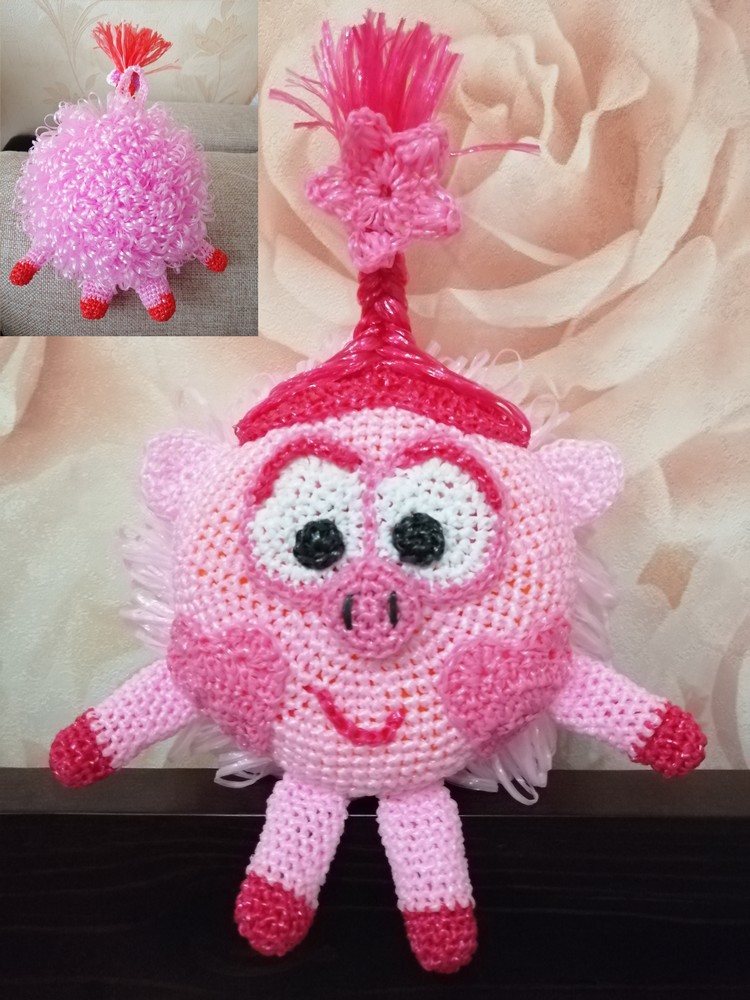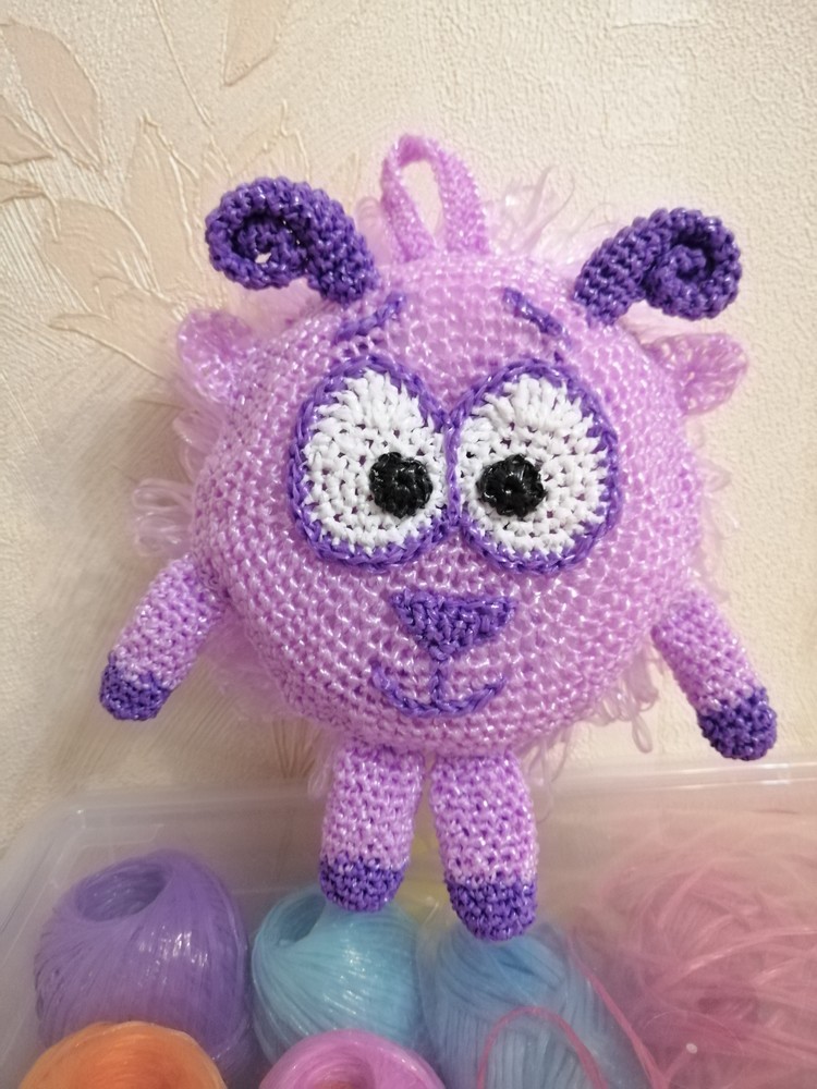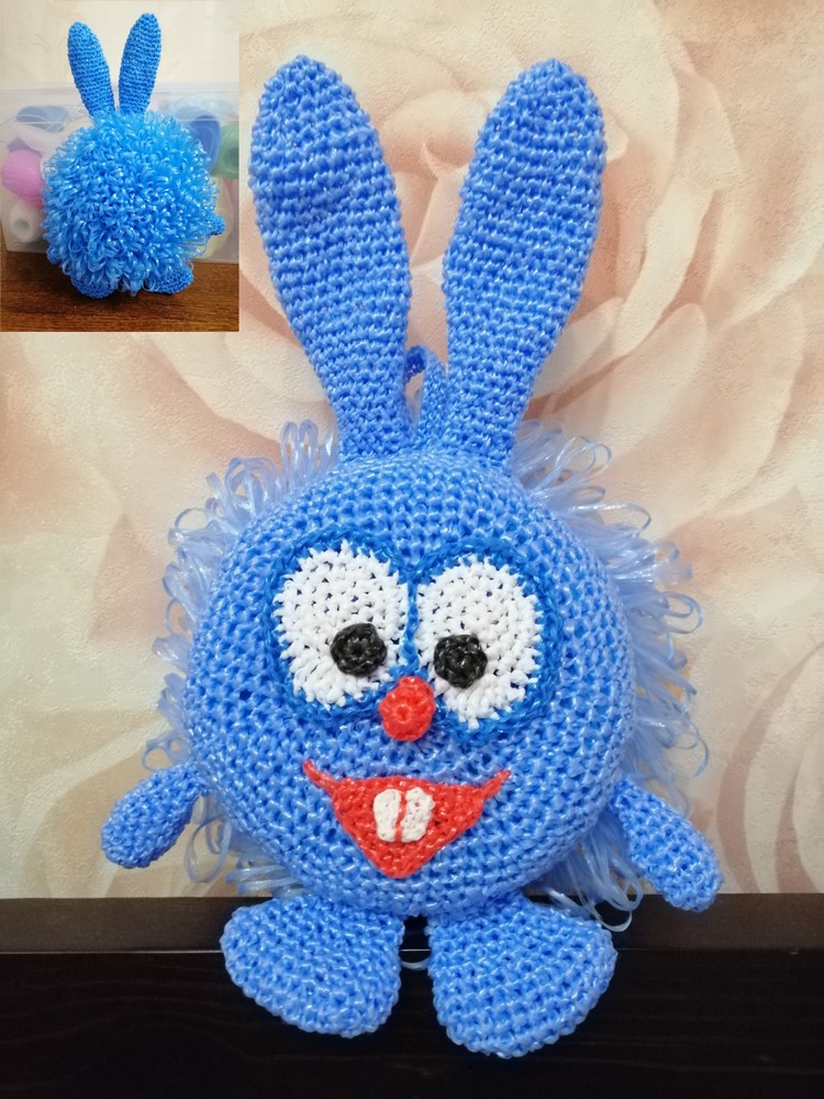 Посмотрев видео на просторах интернета, мне понравился вариант мочалки-игрушки «Смешарик».