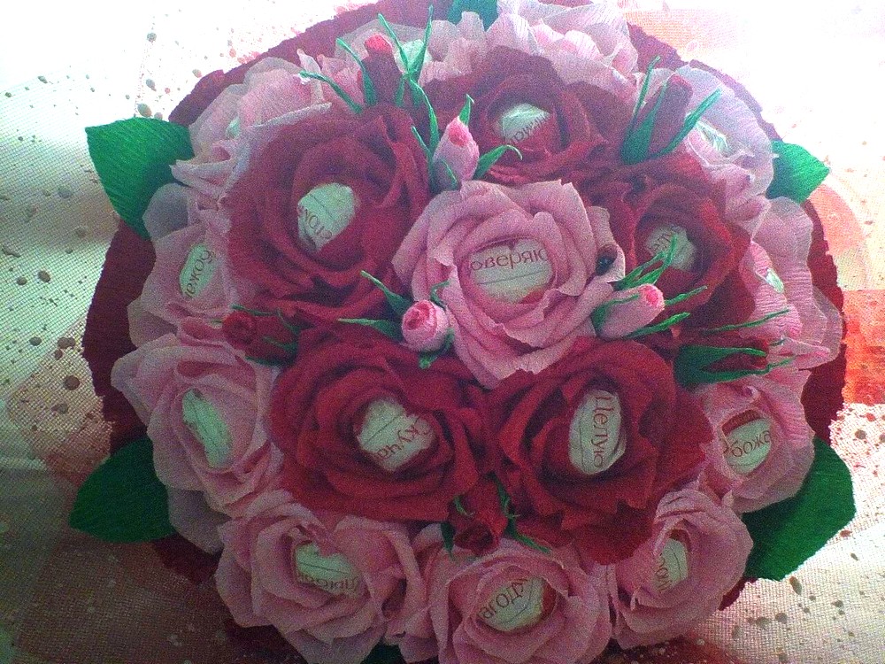 Свой первый букет из конфет я сделала подруге на день рождение.